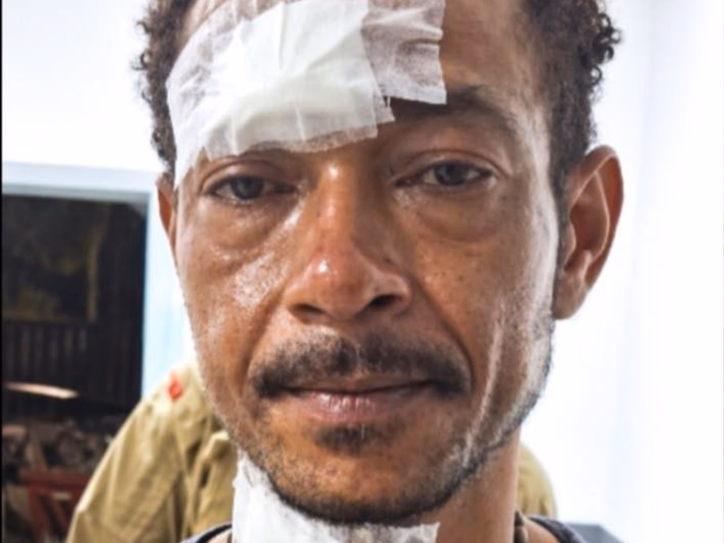 Após fugir, ele não foi localizado nas buscas iniciais. No entanto, pouco depois, uma guarnição foi acionada para verificar a entrada de um homem ferido por arma branca em um hospital. Ele apresentava cortes no rosto, pescoço e outras partes do corpo, além de lesões compatíveis com a ocorrência.