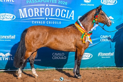 Nascida em 2016, a égua gateada bragada já possui duas rosetas em Esteio, duas rosetas da FICCC e, agora, conseguiu vaga para a grande final da Morfologia na Expointer 2026, em Esteio.