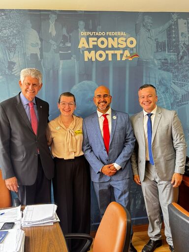 O deputado federal Afonso Motta (PDT) confirmou a destinação de uma emenda parlamentar no valor de R$ 1 milhão para o projeto do Hospital Universitário do Pampa. O anúncio foi feito nesta terça-feira, 25/11, em Brasília, durante reunião com o reitor da Universidade Federal do Pampa (Unipampa), Edward Pessano, a diretora do campus de Uruguaiana, Cheila Stopiglia, e o presidente da Frente Parlamentar em Defesa do Hospital Universitário Federal, deputado estadual Tiago Cadó (PDT).
